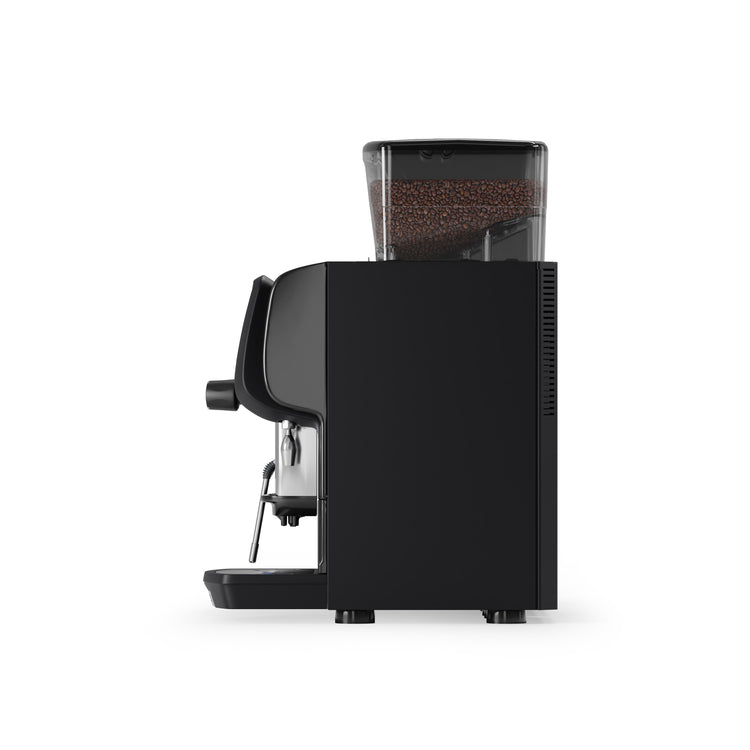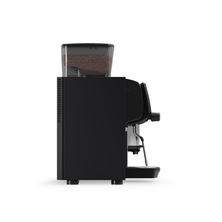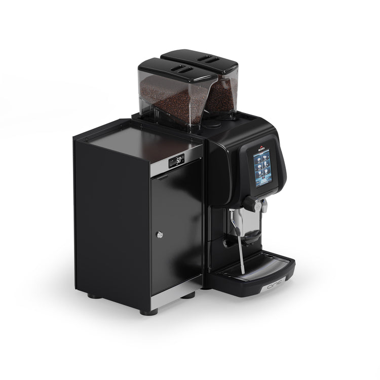 Double grinder fully automatic coffee machine, complete with hot water outlet, manual steam arm and separate milk refrigerator which features automatic milk level monitoring. All prices include installation, commissioning, staff training and 12 months parts and on-site labour warranty.
