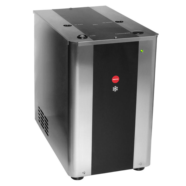 Marco FRIIA Hands-Free is a completely touchless sparkling water system. FRIIA includes an undercounter chiller and a touchless tall font to allow for 12" water bottles or vessels. Designed with award-winning technology, the system contains an undercounter chiller/carbonator and a sleek, stylish countertop font. FRIIA is the perfect system for canteens, gyms, schools, office kitchens, colleges and small coffee shops. Includes Drip Tray and regulator.