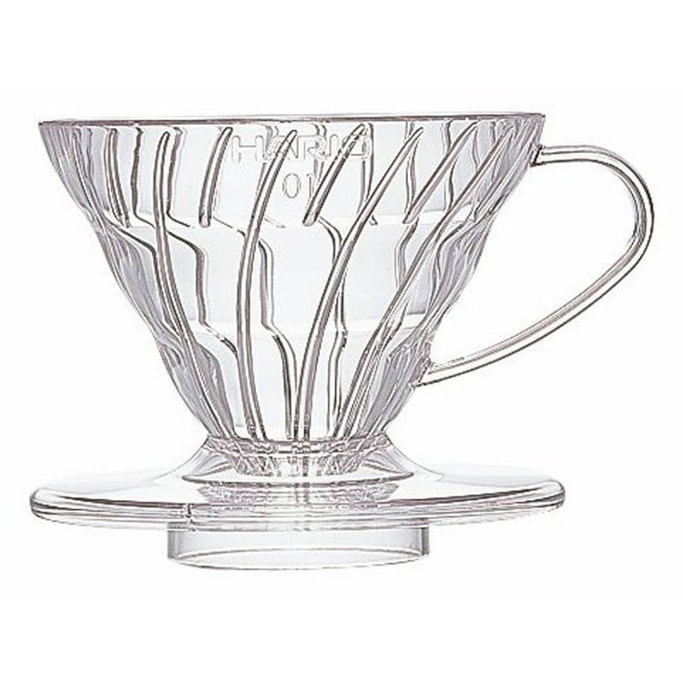 An economic V60 options that looks just as good as the ceramic, glass and metal varieties. Ideal for those new to brewing and for travelling Product features • Brand: Hario • Range: V60 • Material: plastic • Colour: clear • Size: 01 • Brews: 1-2 cups • Filters: V60 paper filters, size 01 (not included) • Filter lifespan: single use • Also available: 02 (3-4 cups) • Also available: red, white • Also available: Replacement filter papers (bleached or unbleached, x40 or x100)
