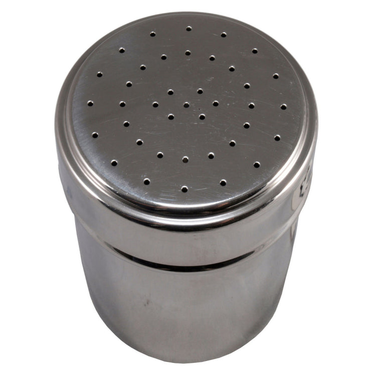 High quality shaker designed for frequent use in commercial environments. For putting the finishing touches on drinks in busy cafes and bars Product features • Material: stainless steel • Size: large • Dimensions: H: 100 x Dia: 65mm • Top: small holes • Dishwasher safe • Also available: small