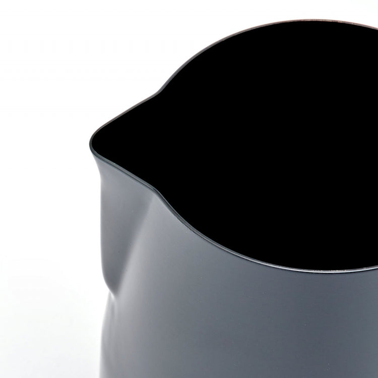 Rhinowares Stealth Milk Pitchers offer numerous stand-out features. Premium non-stick coating: The proprietary non-stick surface and food-safe double coating system ensures the pitcher is more durable than other non-stick brands. The surface makes it easy to keep clean, saving valuable time in a busy cafe setting. Thick and heavy: Underneath the coating is a 1mm thick food-grade stainless steel body which provides better stretch time for texturing milk. The thicker steel also provides a great weight and professional feel. Professional pouring spout: designed for smooth pouring and latte art Comfortable handle: protects the busy barista's hands Product features • Brand: Rhinowares • Material: food-grade stainless steel • Size: 1,000ml • Colour: black • Also available: 350ml, 600ml • Also available: white, blue