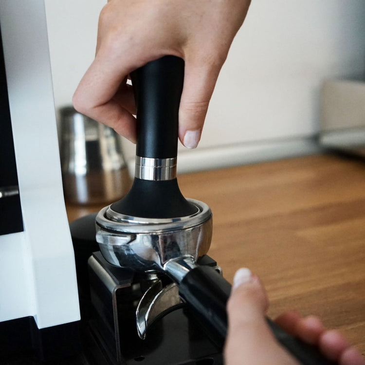 Tamper Perfect Grip from Eureka: available in sleek black and sizes 53mm, 57mm, 58mm, 58.3mm FIT EVERY BARISTA'S HAND: Designed to be user-adjustable via detachable rings that increase or decrease the handle length and thus offer a perfect tamping experience to any type of palm and hand size. ERGONOMIC AND EXRTEMELY COMFORTABLE TO USE: Thanks to the handle designed by Eureka's R&D team, alongside baristas worldwide; ANTI-CHANNELING AID: Supporting the barista tamping technique, thanks to the solidity given by its considerable weight, around half kilo. RUBBER COATED TOP BASE: For a perfect grip during the tamping process and a soft and warm touch KNURLED TAMPING BASE: Designed to help the Barista achieve a levelled tamp PREMIUM QUALITY AND FINISH: Stainless steel base generated by precision mechanical processing to ensure premium aesthetics and dimensional quality as well as a reliable long-lasting product.