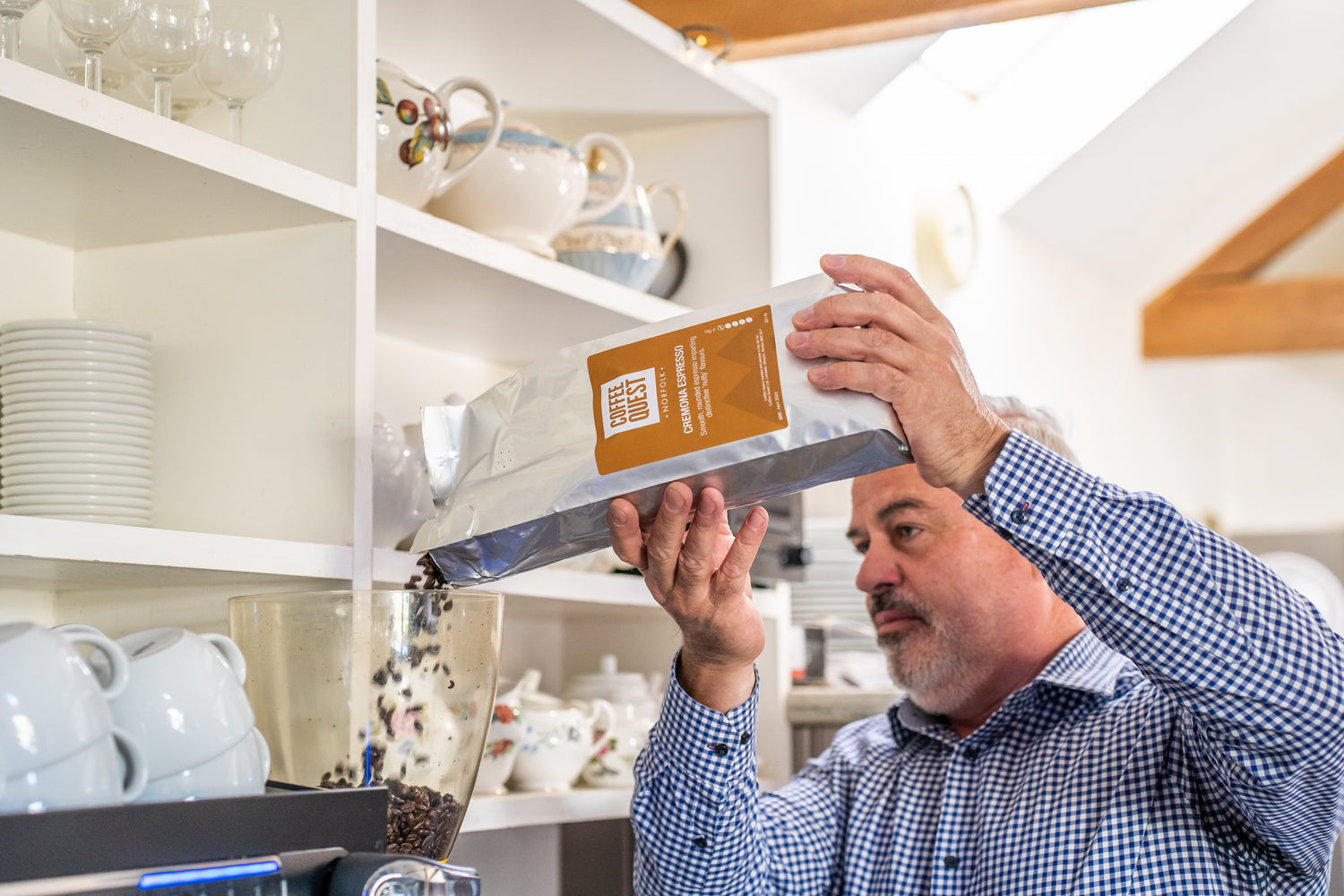 Striving for sustainability by buying in bulk as much as possible, grouping deliveries to minimise our carbon footprint and using recyclable kraft packaging for our coffee products.