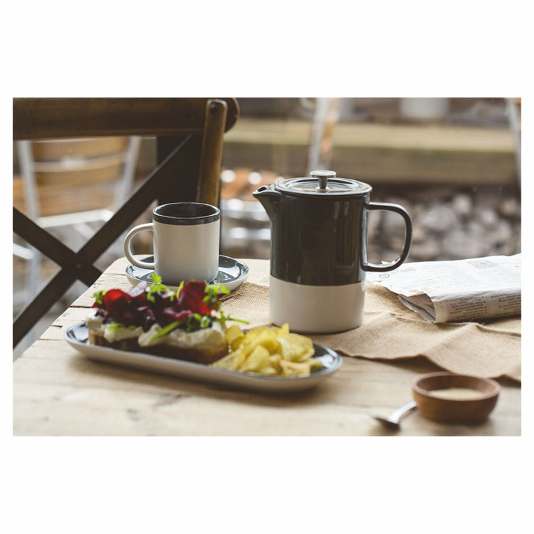 Enjoy your coffee every time with the Barcelona Ceramic Six cup Cafetiere. The Barcelona collection is designed for relaxed moments to enjoy flavourful and richly brewed drinks with it's low maintenance, durable ceramic design & smart-casual style. Embracing the rich colours, cool style and laid back nature of its namesake, the Barcelona collection can be coordinated or mixed and matched. Mugs, cups and saucers are microwave and dishwasher safe. Cafetiere is handwash only, not suitable for microwave. Product features • Brand: La Cafetiere • Range: Barcelona • Pot material: Ceramic • Lid material: ceramic/stainless steel • Size: 6 Cup • Capacity: 850ml • Colour:Grey/White • Handwash only • Not suitable for microwave