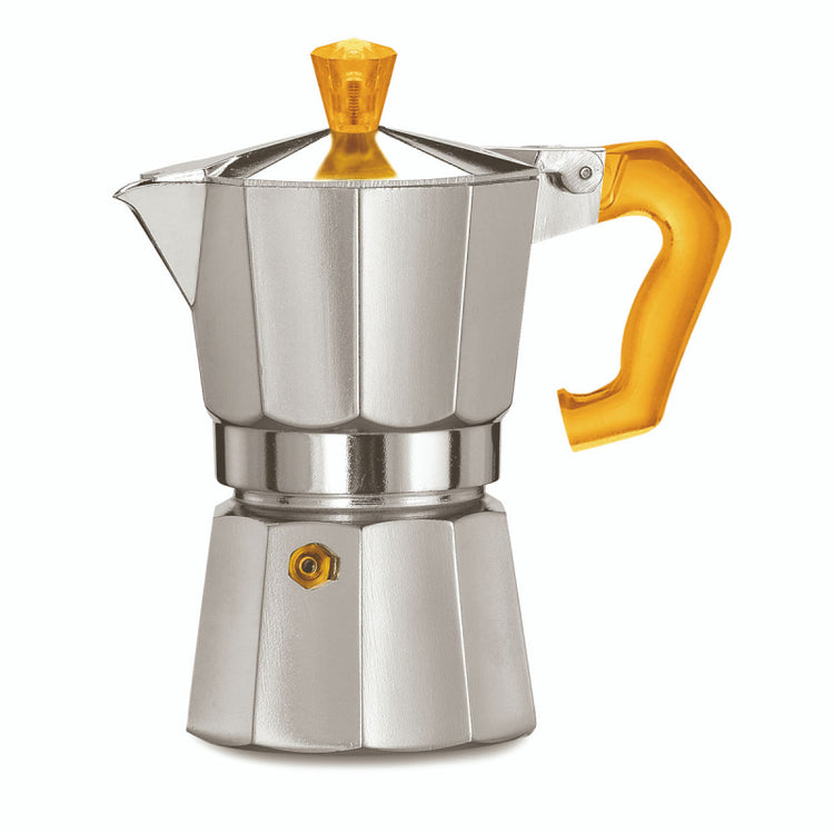 PEZZETTI ITALEXPRESS ALUMINIUM MOKA POT - 3 CUP ORANGE POLYCARBONATE HANDLE