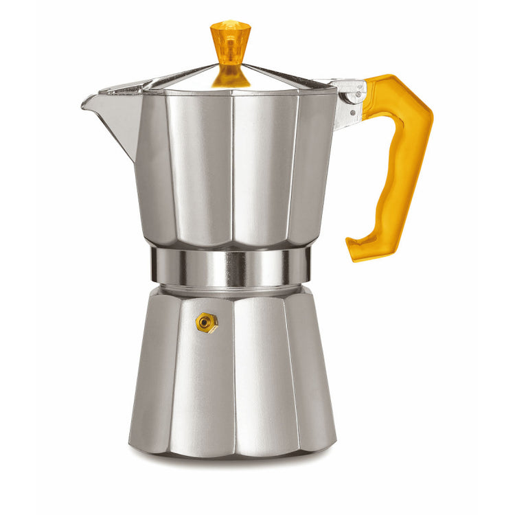 PEZZETTI ITALEXPRESS ALUMINIUM MOKA POT - 6 CUP ORANGE POLYCARBONATE HANDLE