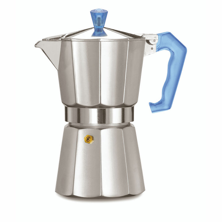 PEZZETTI ITALEXPRESS ALUMINIUM MOKA POT - 6 CUP TEAL BLUE POLYCARBONATE HANDLE